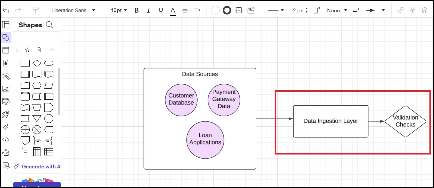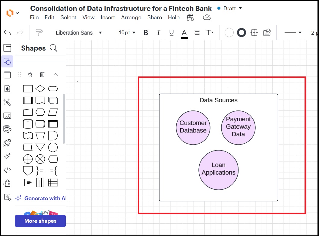 Congratulations on completing the hands-on lab Prepare a Flowchart for the Consolidation of Data Infrastructure. In this lab, you learned how to create a detailed flowchart for consolidating dispersed data silos of a fintech bank into a unified, secure, and governed data infrastructure.